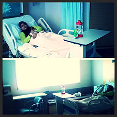"Emel demam dan dimasukkan ke Kelana Jaya Medical Centre. Kemasukkan Emel ditanggung semua oleh VMC. Dapat bilik VIP dan paling mahal di hospital ini. Sekali tengok dah macam hotel pulak!